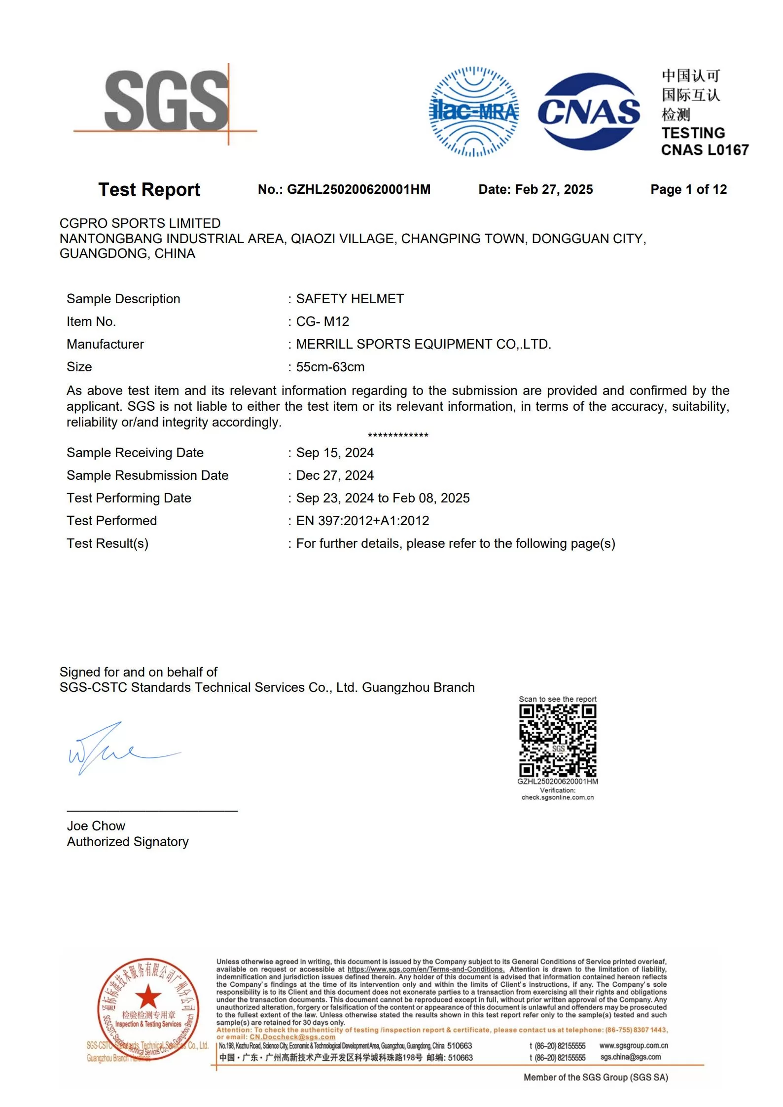 Certification: CE EN397 & EN 50365